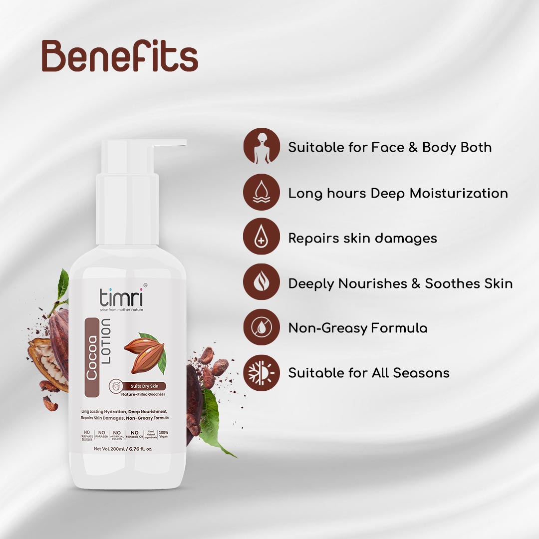 TIMRI Cocoa Body lotion Moisturizer for Normal to Dry Skin - 200ml