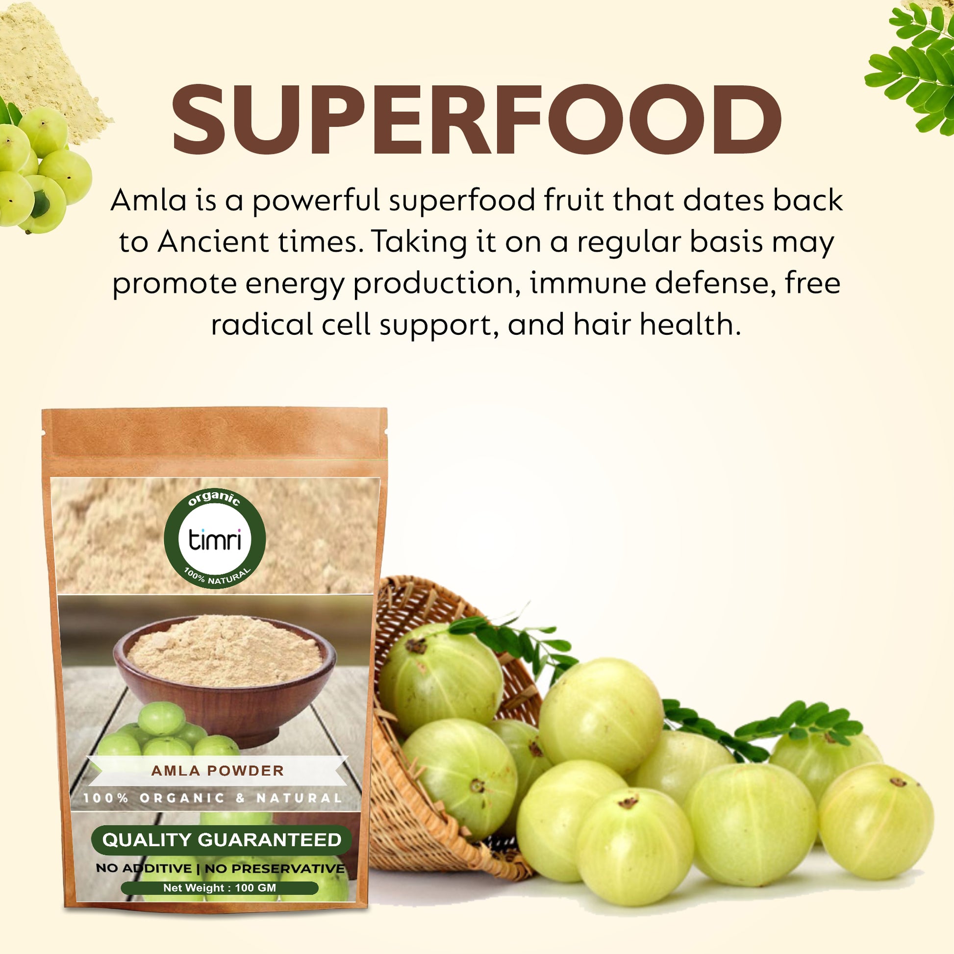 Timri Organic Amla Powder - Vitamin C Superfood for Immunity & Skin Health, 100g