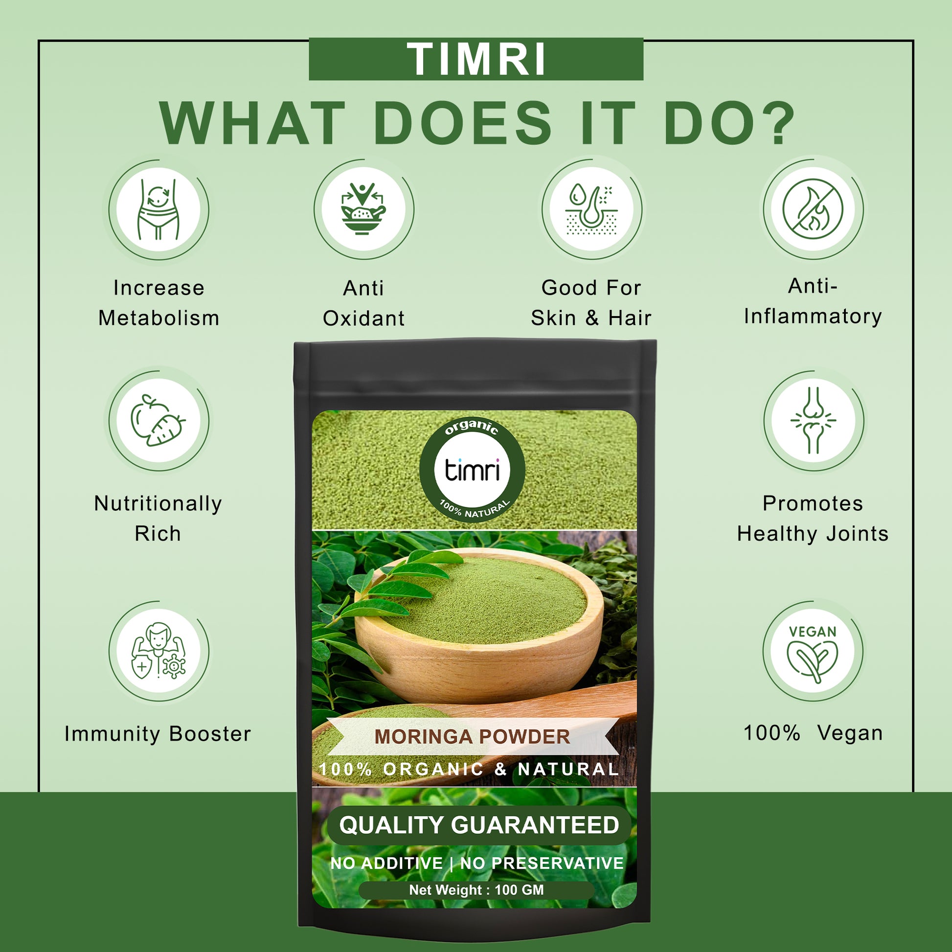 Timri Organic Moringa Leaf Powder - Metabolism & Energy Support